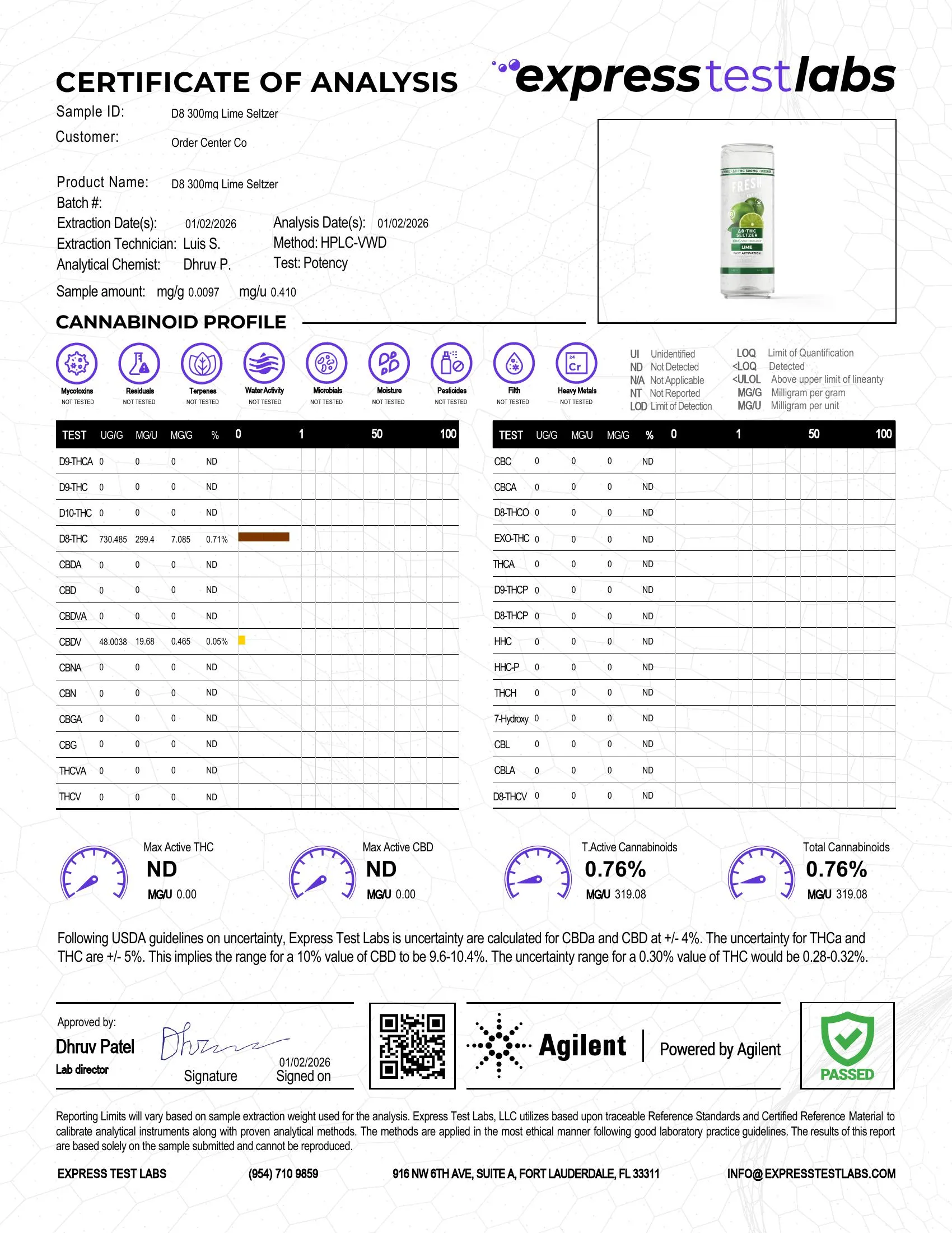 D8 Nano Lime THC Seltzer - 300mg - Fresh