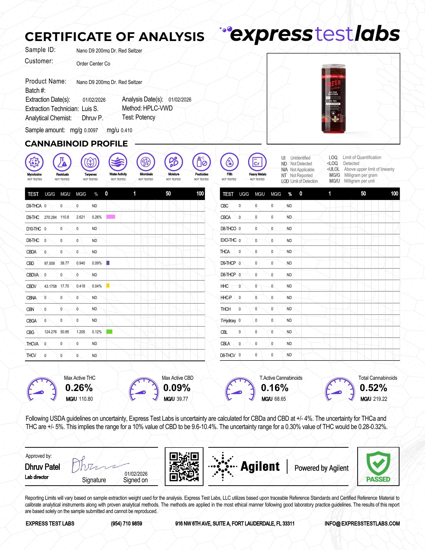 D9 Nano Dr.Red THC Seltzer - 200mg - Fresh