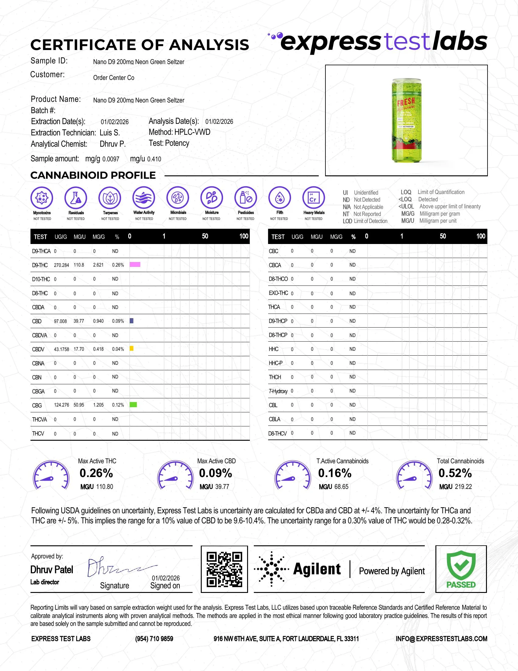 D9 Nano Neon Green THC Seltzer - 200mg - Fresh
