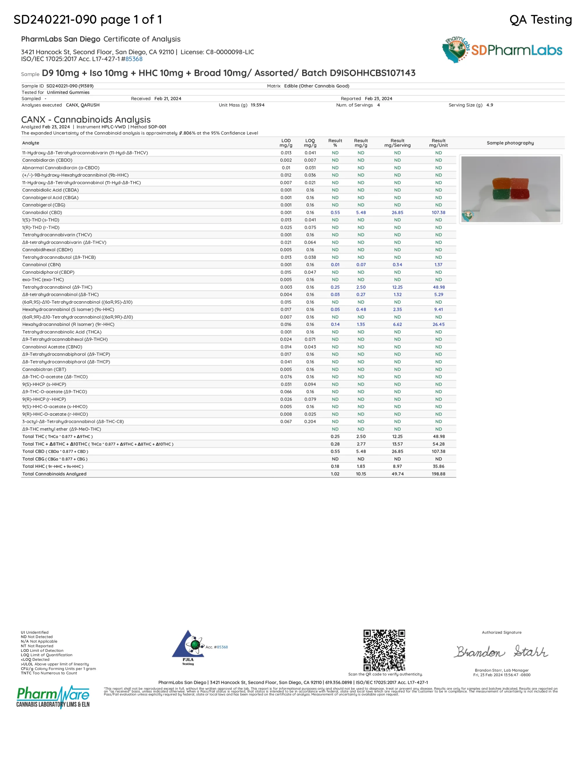 Tapioca Syrup, Corn Syrup, Water, Pectin, Citric Acid Natural Flavors, Fruit and Vegetable Extract (Color), Hemp Derived Delta 9, HHC, Hemp Derived Broad Spectrum CBD, Hemp Derived CBD Isolate
