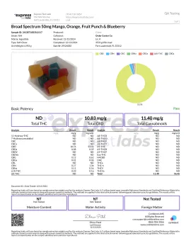 - Each gummy contains 50mg of Broad Spectrum CBD, calm clarity and everyday balance.