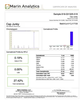 Discover the Cap Junky Strain, a balanced hybrid offering euphoric effects with a rich flavor profile including pepper and fruity notes. Shop this reliable strain for its impressive potency, featuring 26.09% THCa and extensive lab testing for quality assurance. Get value with transparent pricing and a variety of cannabinoid products at your fingertips.