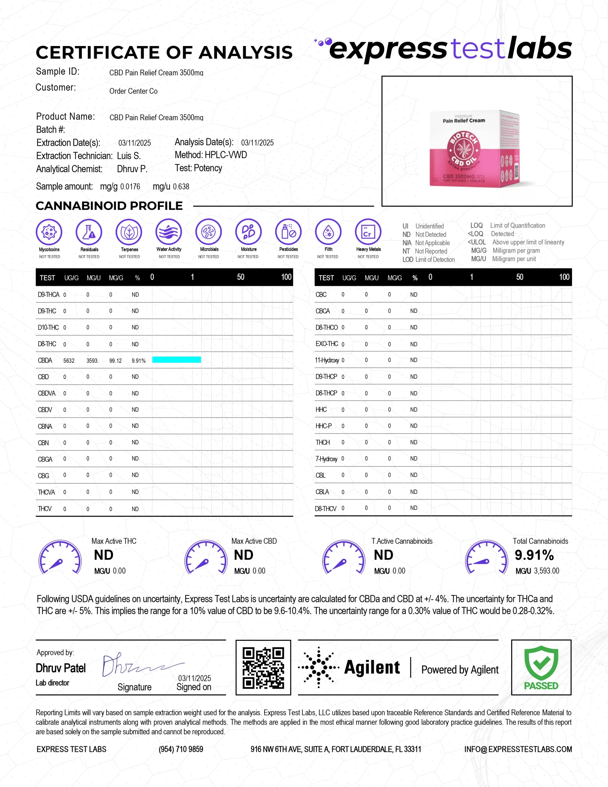 CBD oil Biotech Cream 3500mg will help you keep going no matter what field you play on, because when it comes to our CBD creams we understand that losing is not an option. Our products are lab-tested for quality and safety, and all of our certificates of analysis are available for inspection upon request.
