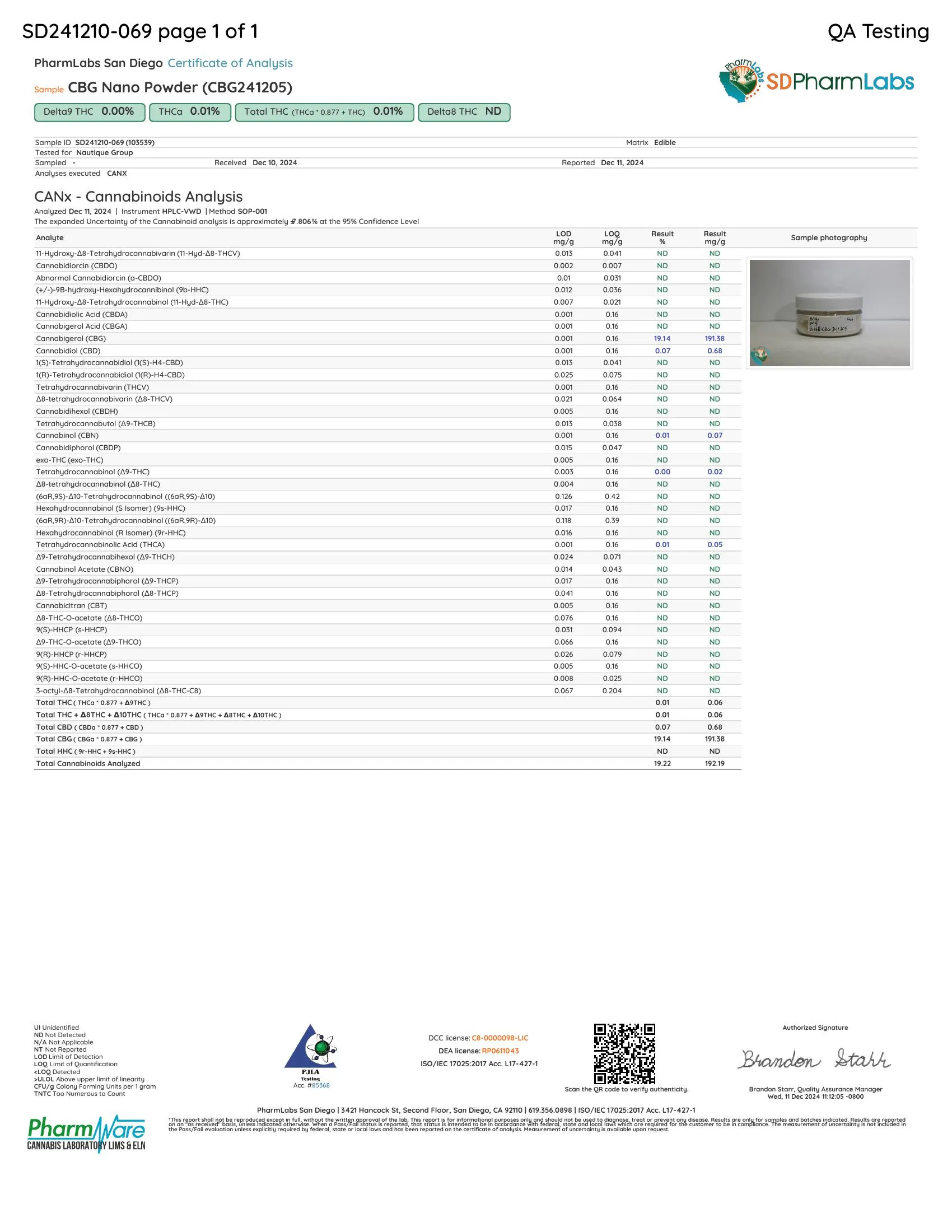 CBG Nano Powder - 1,000mg - Bulk Nano Technology