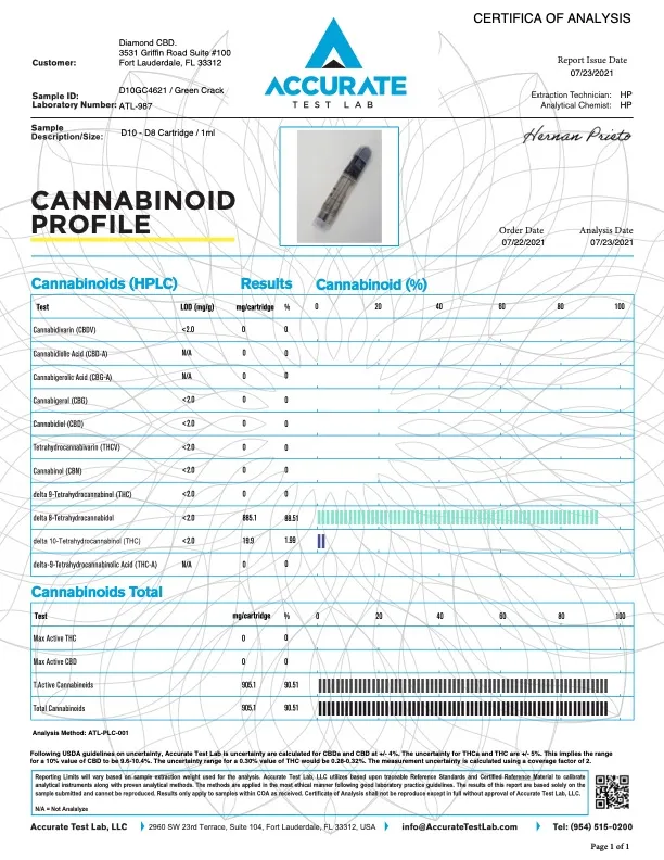 D10, D8 Vape Cart - 1000mg - Green Crack - Sativa - 1ml - Hyper