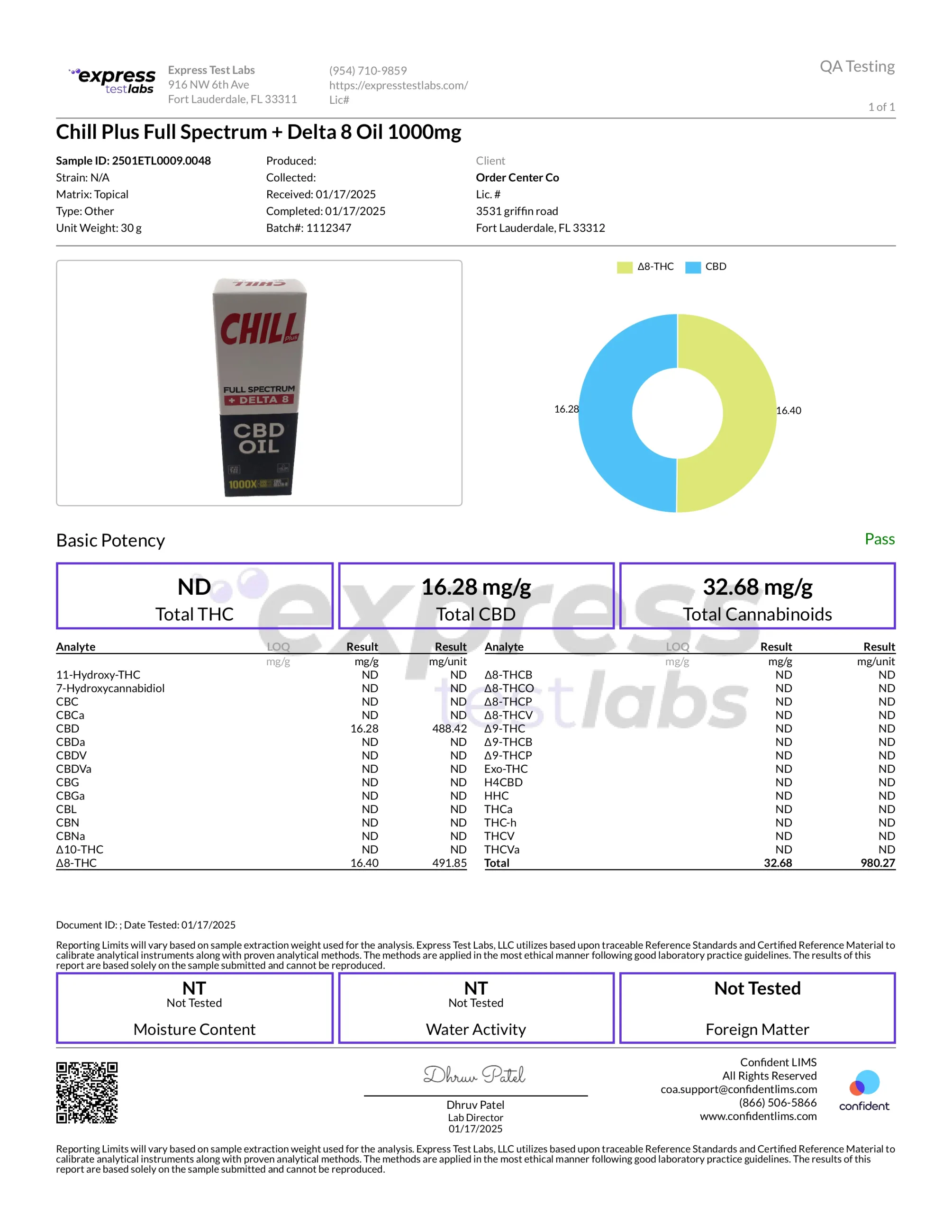D8 & Full Spectrum CBD Oil - 1,000mg - Chill Plus