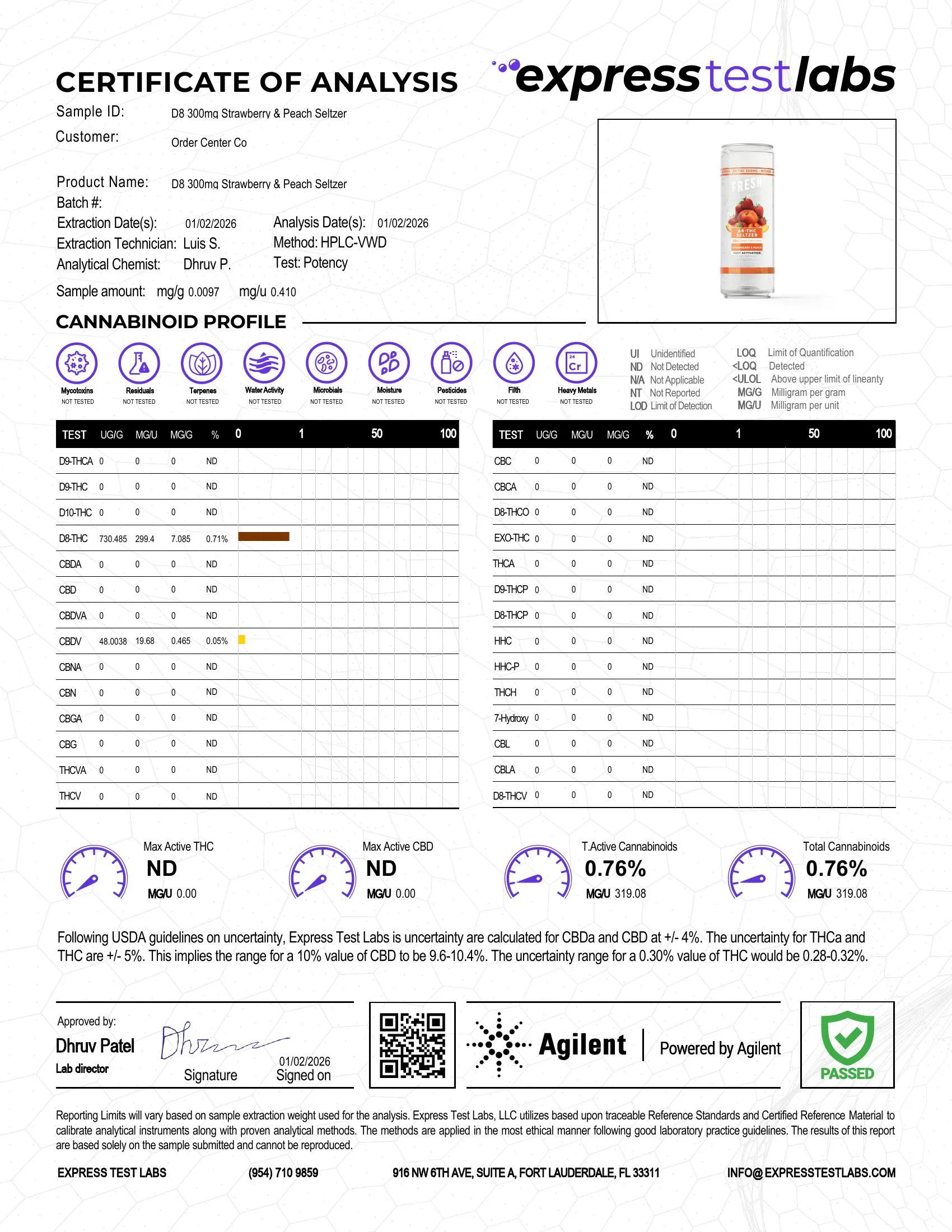 D8 Nano Strawberry & Peach THC Seltzer - 300mg - Fresh