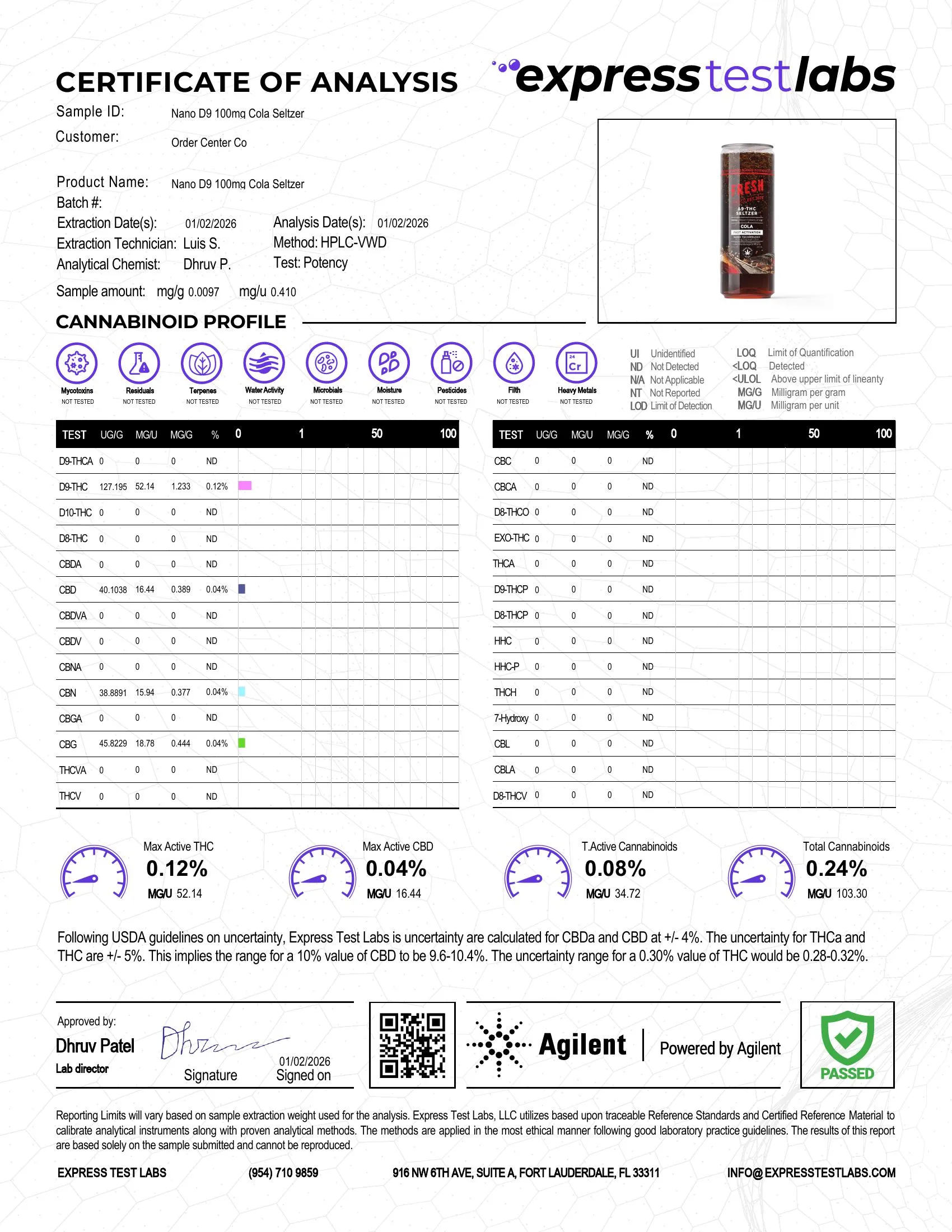 D9 Nano Cola THC Seltzer - 100mg - Fresh
