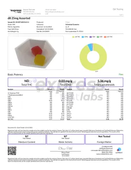 Chill easy knowing our Chill Extreme brand products, including these 25mg D8 + Live Resin Gummies made from the OG Kush strain extract in Raspberry flavor, are rigorously lab tested for purity and safety. Enjoy a mellow buzz without worrying about harmful additives or chemicals.