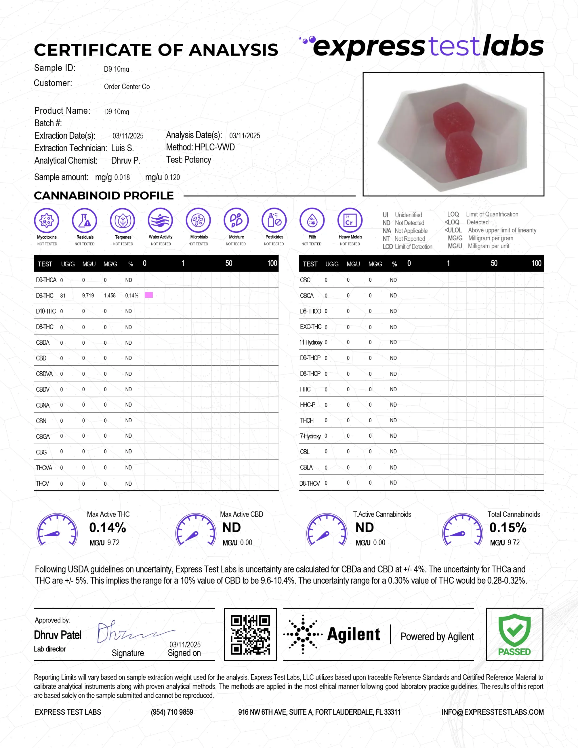 You can buy D9 gummies from us! Our delta 9 THC gummies are our most popular product! We recommend starting slowly with edibles. Take one or two gummies, then increase your dose every few hours until you feel the desired effect. It takes some time for the effects (aka the high) to begin with edible products like gummies. Be patient!