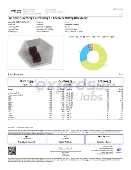 Tapioca Syrup, Corn Syrup, Water, Pectin, Citric Acid Natural Flavors, Fruit and Vegetable Extract (Color), Hemp Derived Full Spectrum CBD, Hemp Derived CBN, L-Theanine, Melatonin