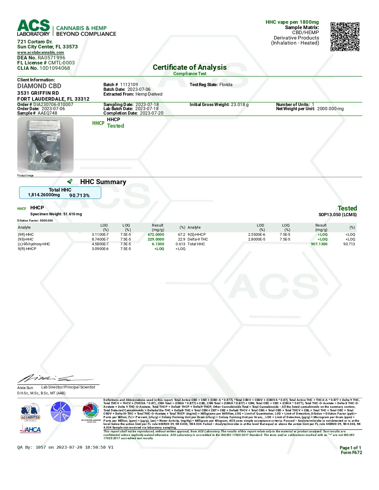 Hemp-derived Hexahydrocannabinol (HHC) extract and Natural Terpenes.