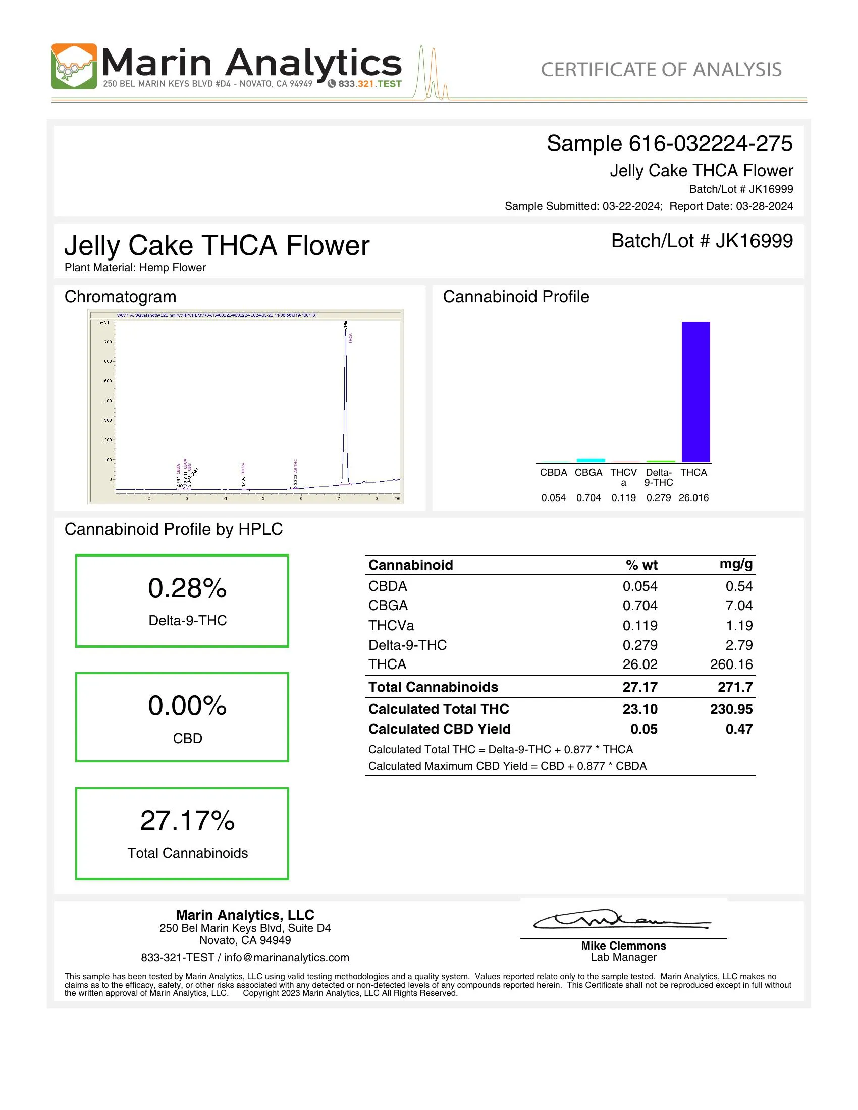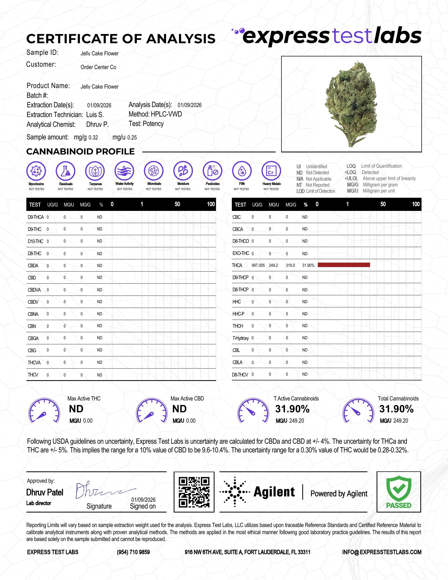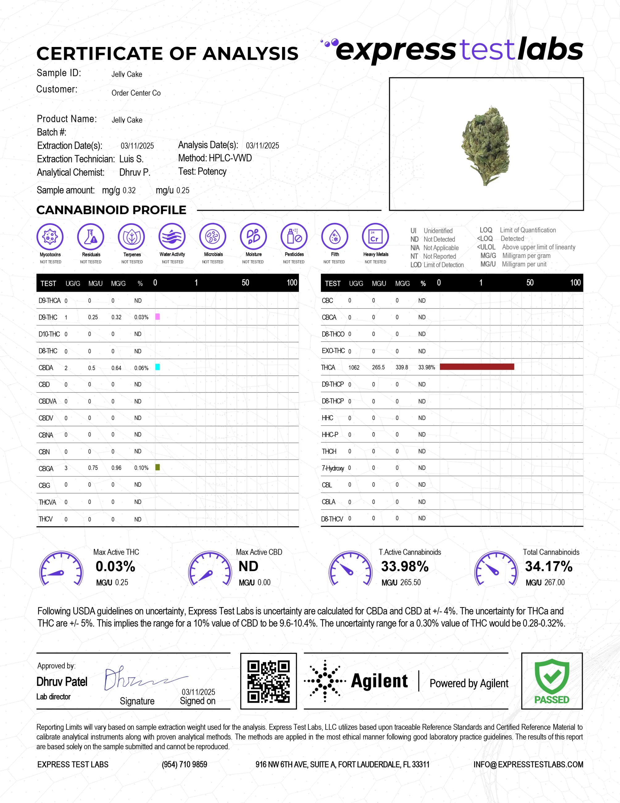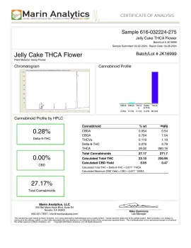 Your safety is our utmost priority. We ensure the superior quality of all our products, including Jelly Cake THCA flower, by testing every batch through a third-party laboratory.