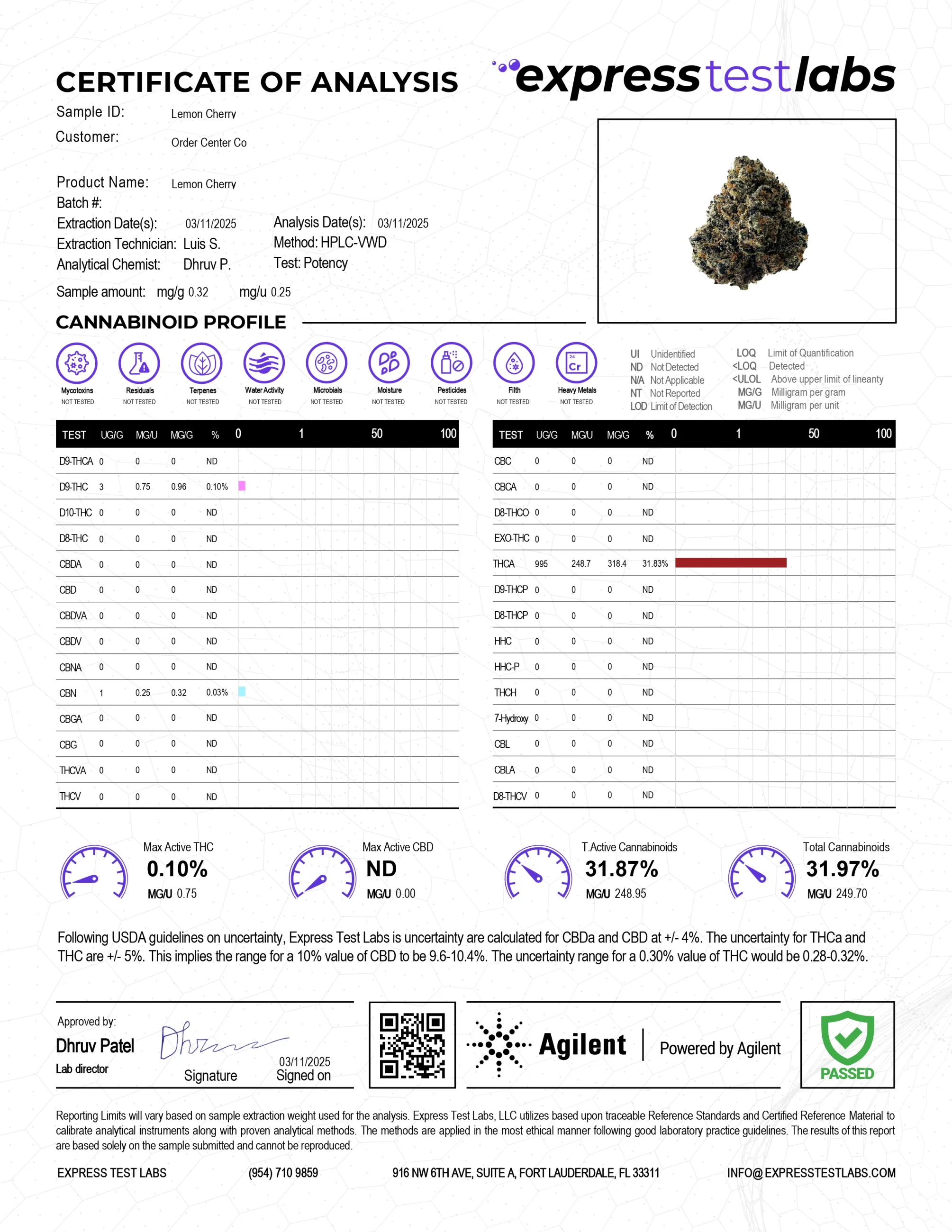 Your safety is our top priority. We ensure that every batch of our Lemon Cherry Gelato THCA hemp flower, along with all our products, undergoes rigorous testing by independent third-party laboratories. This is part of our commitment to delivering consistently high-quality products to our customers.