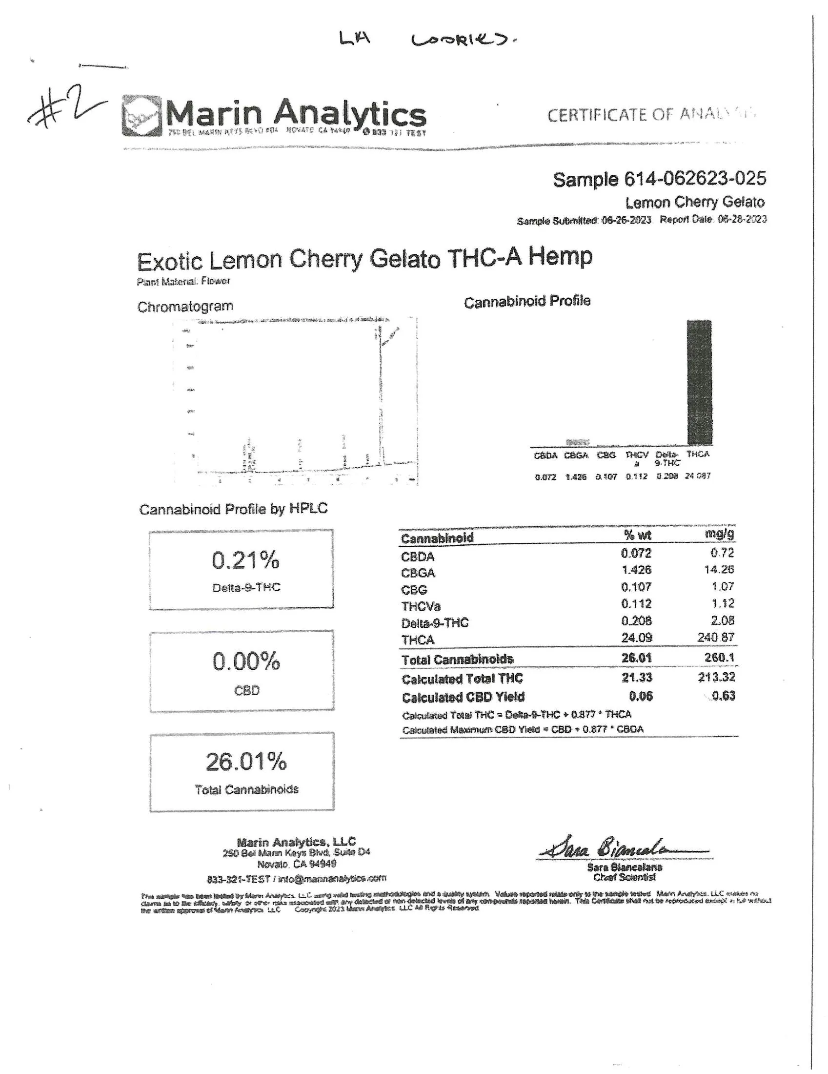Lemon Cherry Gelato Flower - Hybrid - THCA