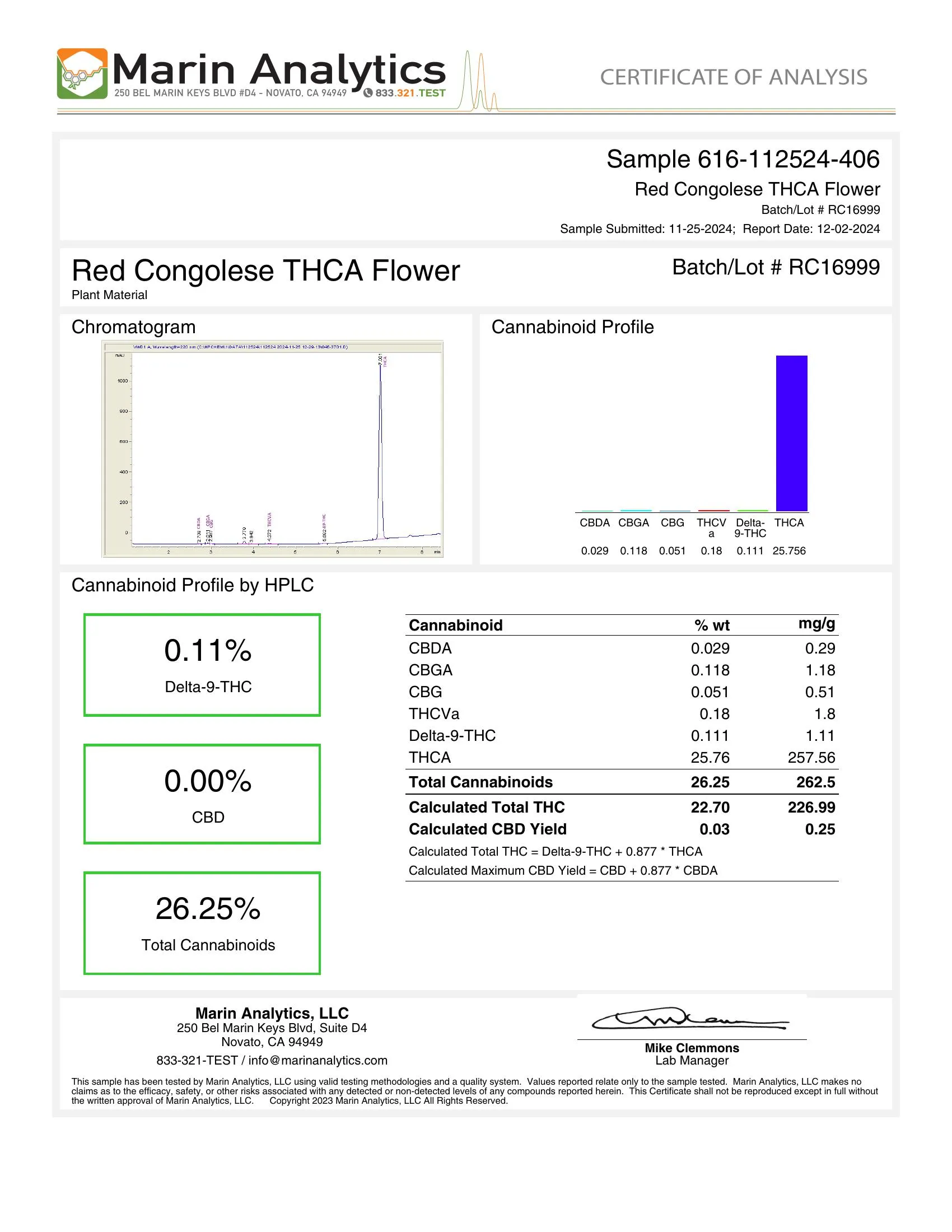 - Total Cannabinoid Contents: 26.25%