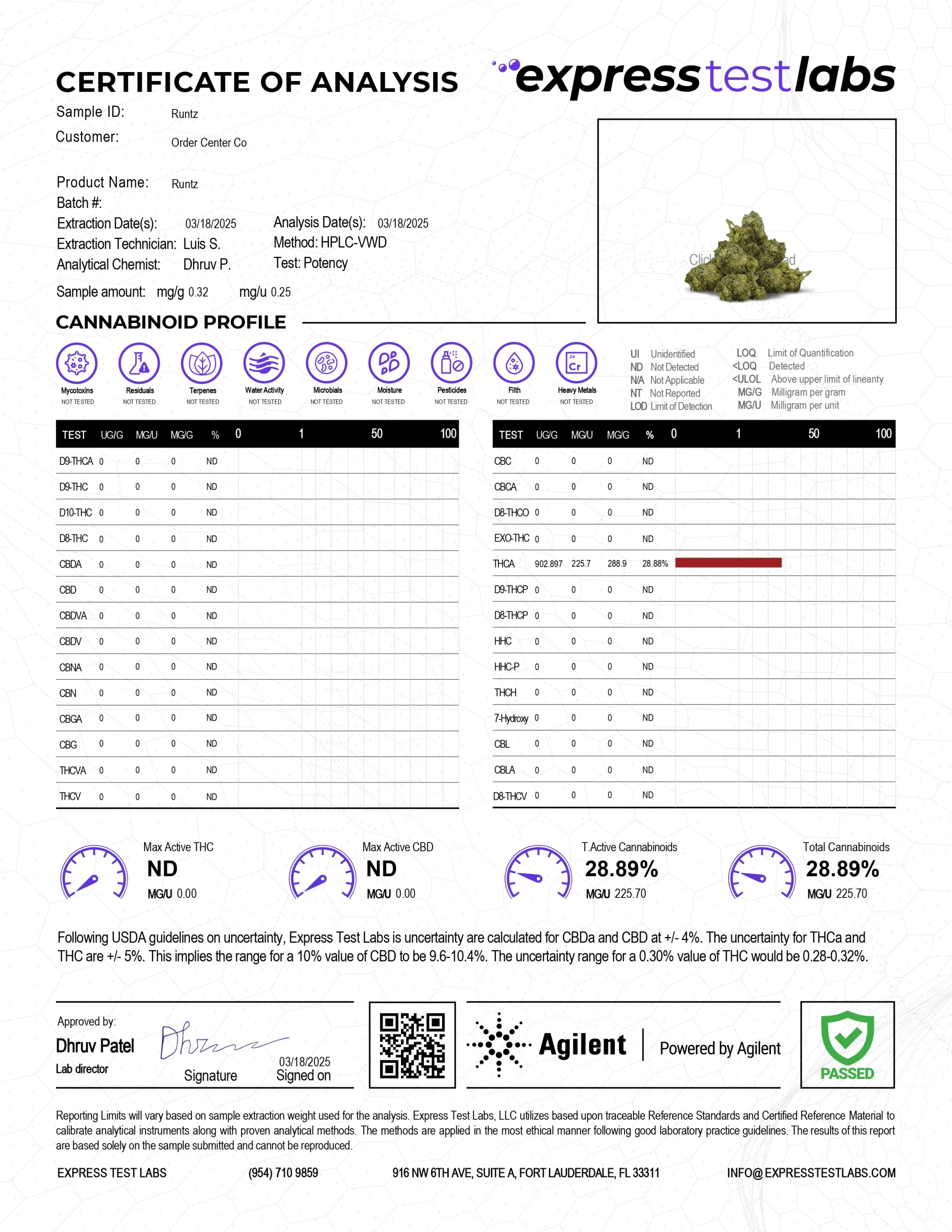 Your safety is our utmost priority. We ensure the superior quality of all our products, including Runtz THCA flower, by testing every batch through a third-party laboratory.