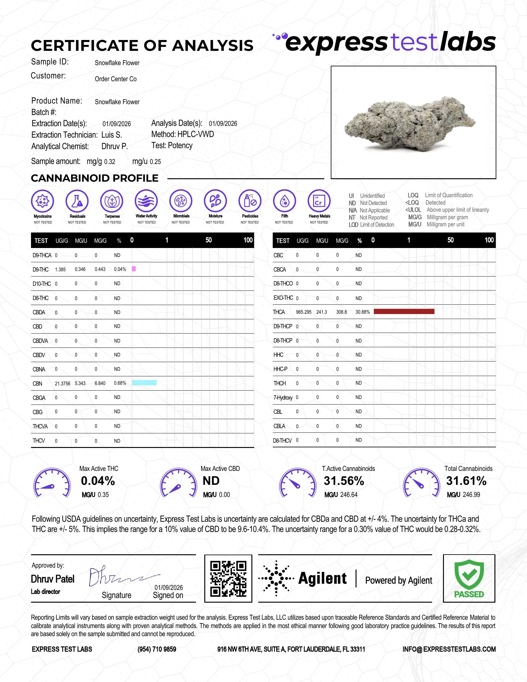 Every batch is carefully sourced from trusted partner farms across the United States, then vetted for quality, compliance, and purity. As a hemp-derived product, Snowflake is Farm Bill compliant, with Delta 9 THC at or below 0.3% by dry weight. When heated—through smoking or vaporizing—THCA converts to THC, unlocking the traditional effects experienced with cannabis.