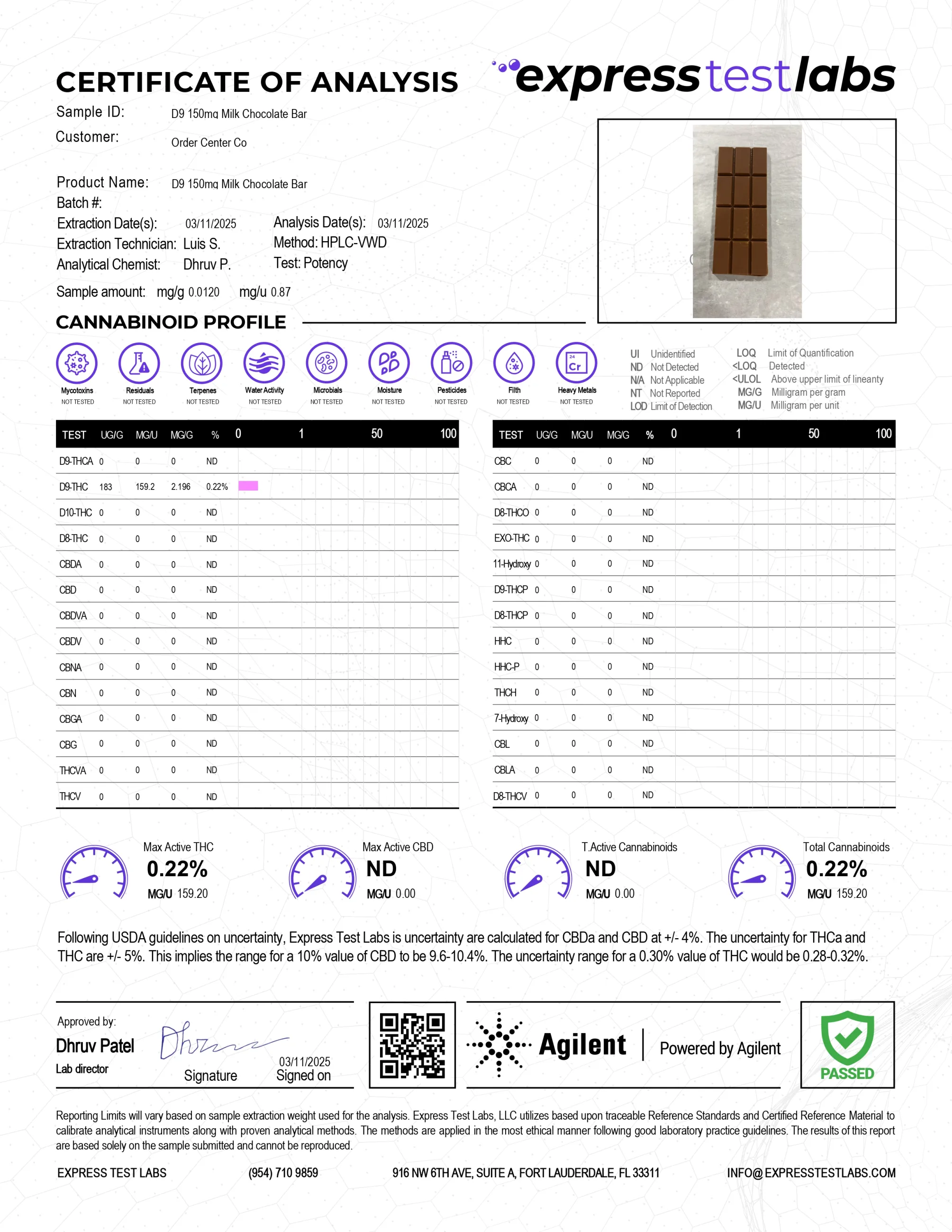 Belgian milk chocolate Couverture (Min. cocoa 33.6%), Sugar, Cocoa butter, Whole milk powder, Cocoa mass, Emulsifier, Soya lecithin, Natural vanilla, Certified Kosher, and Hemp-derived Delta-9 THC extract.
