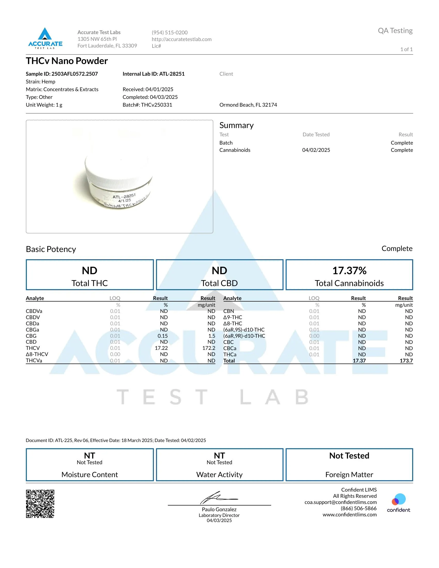 This unflavored THCV nano powder from Bulk Nano Technology is a versatile edible format designed for effortless mixing and fast onset. With a total of 50g per bag, it blends seamlessly into beverages and recipes while delivering a refined, functional THCV experience powered by nano science.