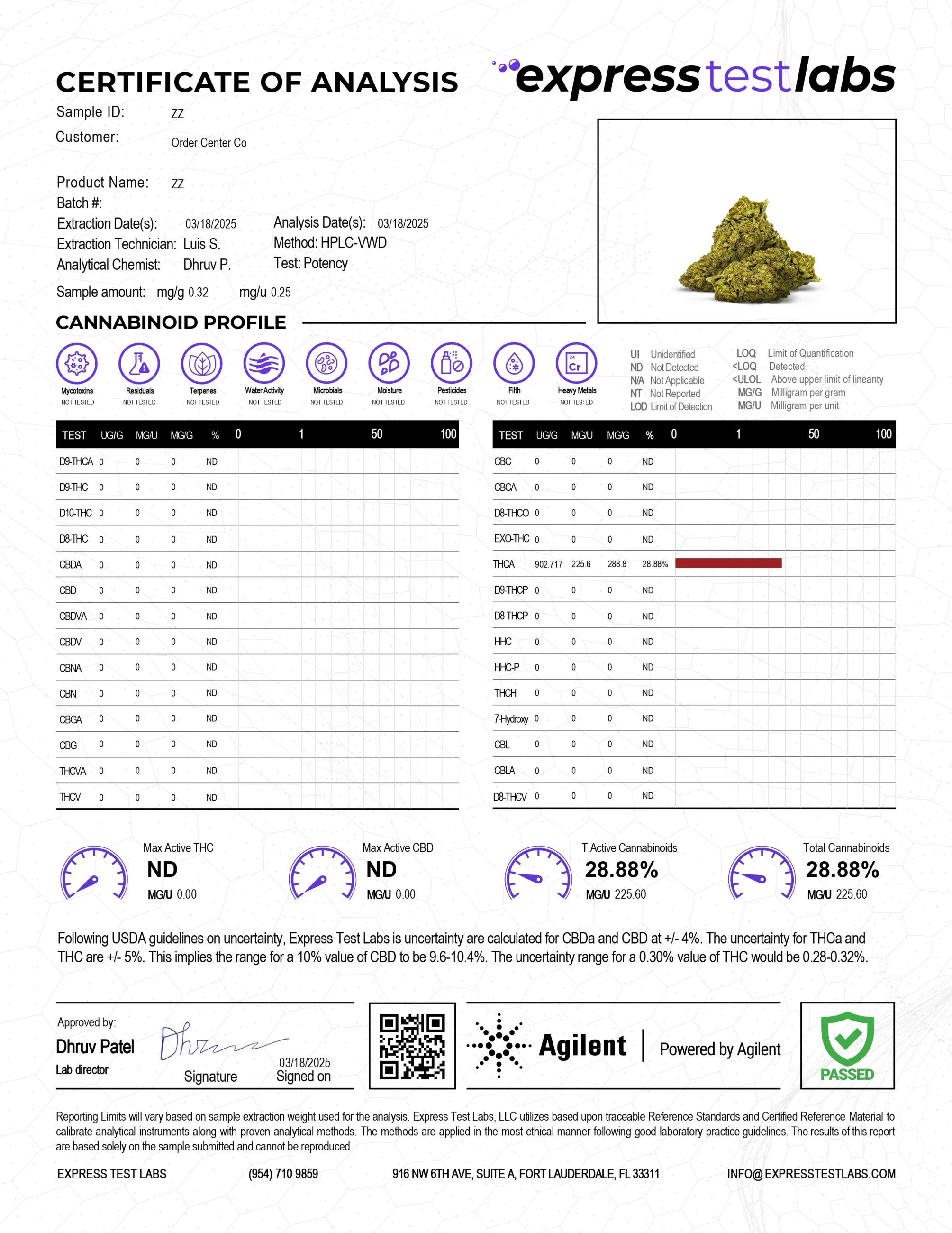 Your safety is our utmost priority. We ensure the superior quality of all our products, including ZZ THCA flower, by testing every batch through a third-party laboratory.